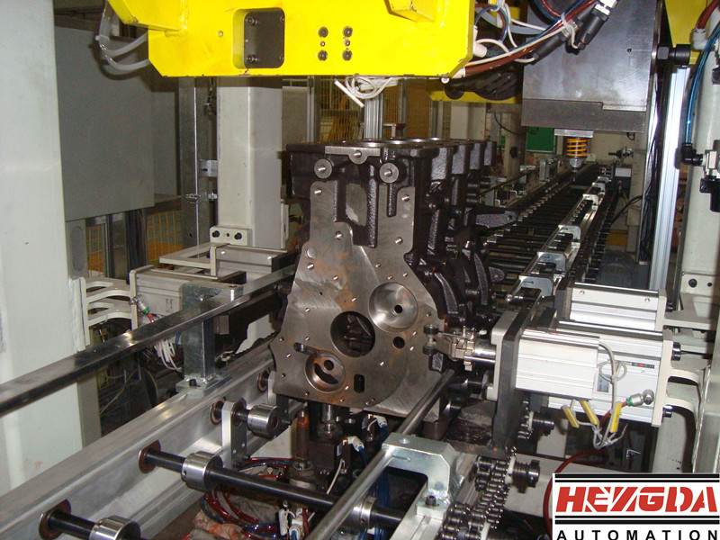 隨著汽車工業的發展,發動機裝配線 的自動化程度越來越高,發動機裝配線主要由活塞連桿分裝線、缸蓋分裝線、總成裝配線組成。具體的設備大致包括:摩擦輸送線、托盤、打號機、激光標簽打印機、翻轉機、缸孔噴油裝置、活塞插入輔助裝置、曲軸分組號攝像識別裝置、主軸瓦選配裝置、氣門插入翻轉臺、氣門拍打裝置、活塞銷壓裝機、潤滑油噴嘴壓裝及檢測機、氣門油封壓裝機、缸蓋水管接頭壓裝機、火花塞導管壓裝機、主軸承蓋螺栓擰緊機、連桿螺栓擰緊機、缸蓋螺栓擰緊機、凸輪軸蓋螺栓擰緊機、正時鏈蓋擰緊機、油底殼擰緊機、曲軸皮帶輪螺栓擰緊機、主軸承蓋螺栓松開機、連桿螺栓旋松機、總線控制系統與信息管理系統、裝配線工具、量檢具、通用料架、智能料架、冷試臺架、機械挺柱選配裝置、氣門鎖夾壓裝機、涂膠及機油加注設備、泄漏檢測設備、曲軸端隙及扭矩測量裝置、曲軸回轉力矩檢測+油道試漏、MPI試漏機、缸蓋泄漏試驗機、長缸油路試漏機、長缸水路試漏機。
