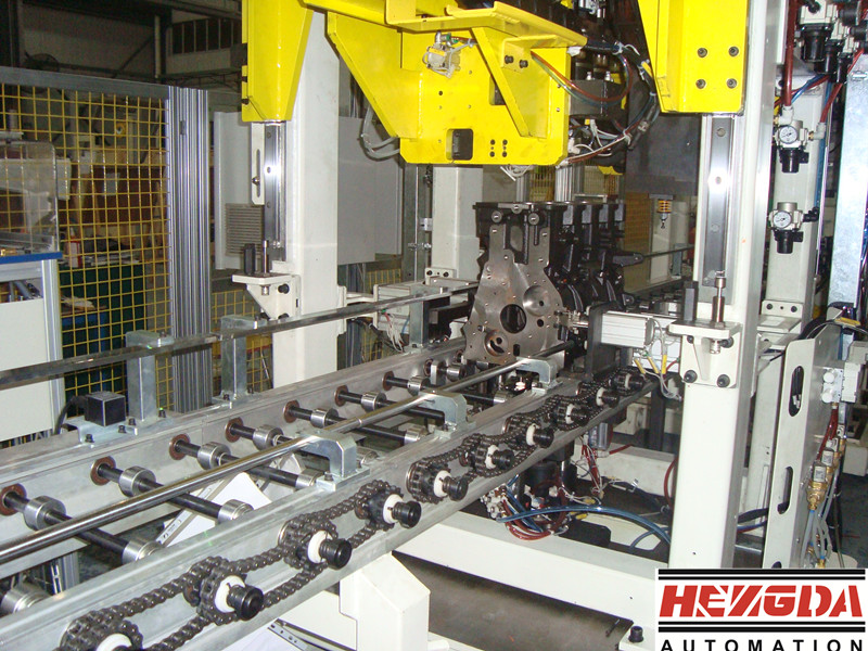 隨著汽車工業(yè)的發(fā)展,發(fā)動機(jī)裝配線 的自動化程度越來越高,發(fā)動機(jī)裝配線主要由活塞連桿分裝線、缸蓋分裝線、總成裝配線組成。具體的設(shè)備大致包括:摩擦輸送線、托盤、打號機(jī)、激光標(biāo)簽打印機(jī)、翻轉(zhuǎn)機(jī)、缸孔噴油裝置、活塞插入輔助裝置、曲軸分組號攝像識別裝置、主軸瓦選配裝置、氣門插入翻轉(zhuǎn)臺、氣門拍打裝置、活塞銷壓裝機(jī)、潤滑油噴嘴壓裝及檢測機(jī)、氣門油封壓裝機(jī)、缸蓋水管接頭壓裝機(jī)、火花塞導(dǎo)管壓裝機(jī)、主軸承蓋螺栓擰緊機(jī)、連桿螺栓擰緊機(jī)、缸蓋螺栓擰緊機(jī)、凸輪軸蓋螺栓擰緊機(jī)、正時鏈蓋擰緊機(jī)、油底殼擰緊機(jī)、曲軸皮帶輪螺栓擰緊機(jī)、主軸承蓋螺栓松開機(jī)、連桿螺栓旋松機(jī)、總線控制系統(tǒng)與信息管理系統(tǒng)、裝配線工具、量檢具、通用料架、智能料架、冷試臺架、機(jī)械挺柱選配裝置、氣門鎖夾壓裝機(jī)、涂膠及機(jī)油加注設(shè)備、泄漏檢測設(shè)備、曲軸端隙及扭矩測量裝置、曲軸回轉(zhuǎn)力矩檢測+油道試漏、MPI試漏機(jī)、缸蓋泄漏試驗機(jī)、長缸油路試漏機(jī)、長缸水路試漏機(jī)。