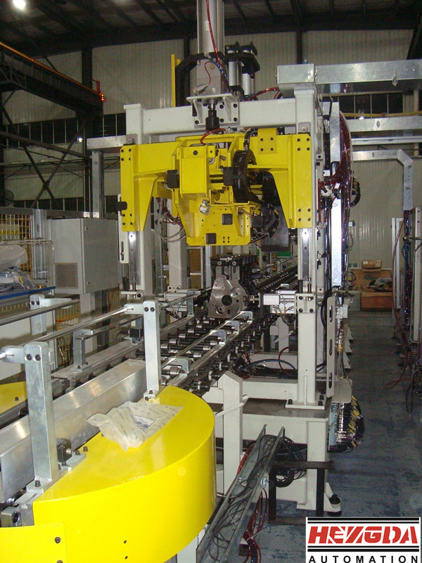 隨著汽車工業的發展,發動機裝配線 的自動化程度越來越高,發動機裝配線主要由活塞連桿分裝線、缸蓋分裝線、總成裝配線組成。具體的設備大致包括:摩擦輸送線、托盤、打號機、激光標簽打印機、翻轉機、缸孔噴油裝置、活塞插入輔助裝置、曲軸分組號攝像識別裝置、主軸瓦選配裝置、氣門插入翻轉臺、氣門拍打裝置、活塞銷壓裝機、潤滑油噴嘴壓裝及檢測機、氣門油封壓裝機、缸蓋水管接頭壓裝機、火花塞導管壓裝機、主軸承蓋螺栓擰緊機、連桿螺栓擰緊機、缸蓋螺栓擰緊機、凸輪軸蓋螺栓擰緊機、正時鏈蓋擰緊機、油底殼擰緊機、曲軸皮帶輪螺栓擰緊機、主軸承蓋螺栓松開機、連桿螺栓旋松機、總線控制系統與信息管理系統、裝配線工具、量檢具、通用料架、智能料架、冷試臺架、機械挺柱選配裝置、氣門鎖夾壓裝機、涂膠及機油加注設備、泄漏檢測設備、曲軸端隙及扭矩測量裝置、曲軸回轉力矩檢測+油道試漏、MPI試漏機、缸蓋泄漏試驗機、長缸油路試漏機、長缸水路試漏機。