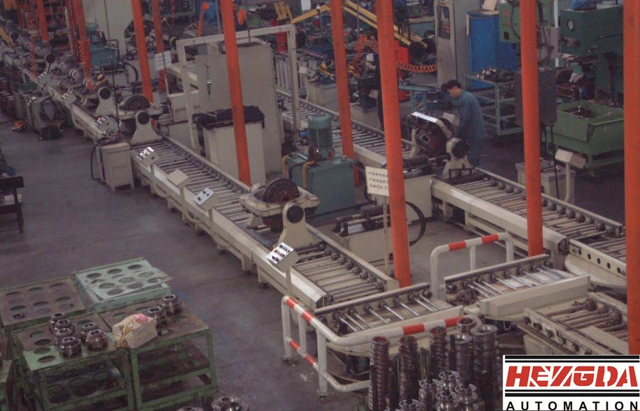 車橋裝配線一般包括主動錐齒輪帶軸承座總成裝配線、差速器總成裝配線、主減速器總成裝配線、軸間差速器裝配支線、驅動橋總成及工字前橋裝配線、輪轂支線、輪邊支線等組成。