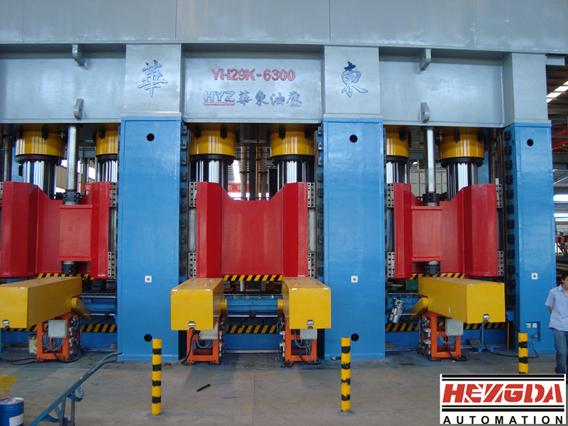 汽車縱梁壓制液壓機主要適用于大型汽車底梁的壓制成型、沖裁、落料工藝,也可以從事其他塑料材料的壓制、彎曲、成型等工業。本系列液壓機主要組成部分包括:液壓機主機、移動工作臺、液壓傳動系統、潤滑系統、電氣控制系統、及其他輔助裝置等,有輔機自動上下料裝置進行配合工作,實現車架縱梁的自動成型工藝。
