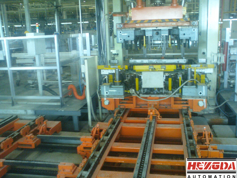 ②一臺(tái)機(jī)器帶一個(gè)雙工位換模小車的結(jié)構(gòu),換模小車在機(jī)器后側(cè)左右移動(dòng)實(shí)現(xiàn)模具更換,在機(jī)器的左右側(cè)或前側(cè)布置上下料機(jī)構(gòu)。包邊液壓機(jī)的噸位小,臺(tái)面尺寸偏大,所以均采用雙活塞缸結(jié)構(gòu),以便均布液壓機(jī)的受力。為降低成本,在客戶沒有特別強(qiáng)調(diào)的情況下油缸及拉桿在技術(shù)協(xié)議中均取消鍛鋼的描述,而敘述為優(yōu)質(zhì)鋼材。包邊液壓機(jī)主要用于汽車四門兩蓋的門板的壓合工藝,噸位選擇一般為150-250噸,從我廠目前已生產(chǎn)的包邊機(jī)看,150噸、200噸的占所有產(chǎn)品份額的90%以上,其中又以200噸的居多,所以包邊液壓機(jī)的標(biāo)準(zhǔn)噸位定位200噸。汽車包邊模具的尺寸大部分在2000-2800mm之間,高度在500-1000mm之間,因此包邊壓機(jī)的工作臺(tái)有效尺寸按照3個(gè)檔次設(shè)置:3200*2800mm、3000*2600mm、2600*2400mm;包邊壓機(jī)的開口尺寸定為2000mm,行程1450mm,基本可以涵蓋所有包邊模具的使用。